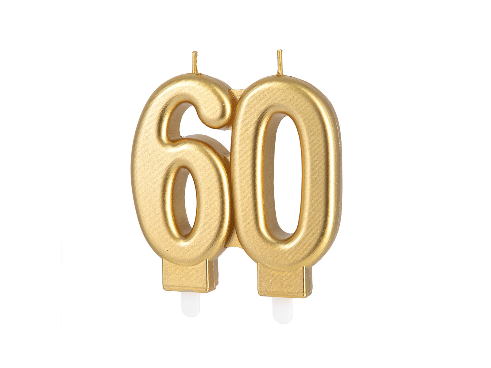 Lumânare aurie aniversară 60 de ani - 7,7 cm - 1 buc.