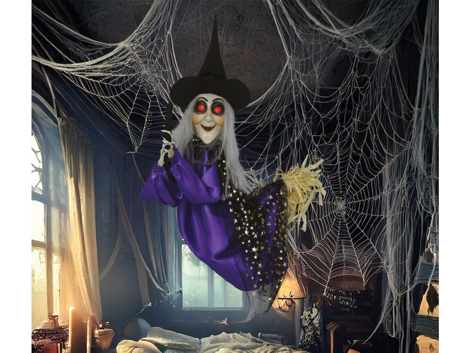 Decorațiune de agățat Vrăjitoare pe mătură - 75 cm - 1 buc.