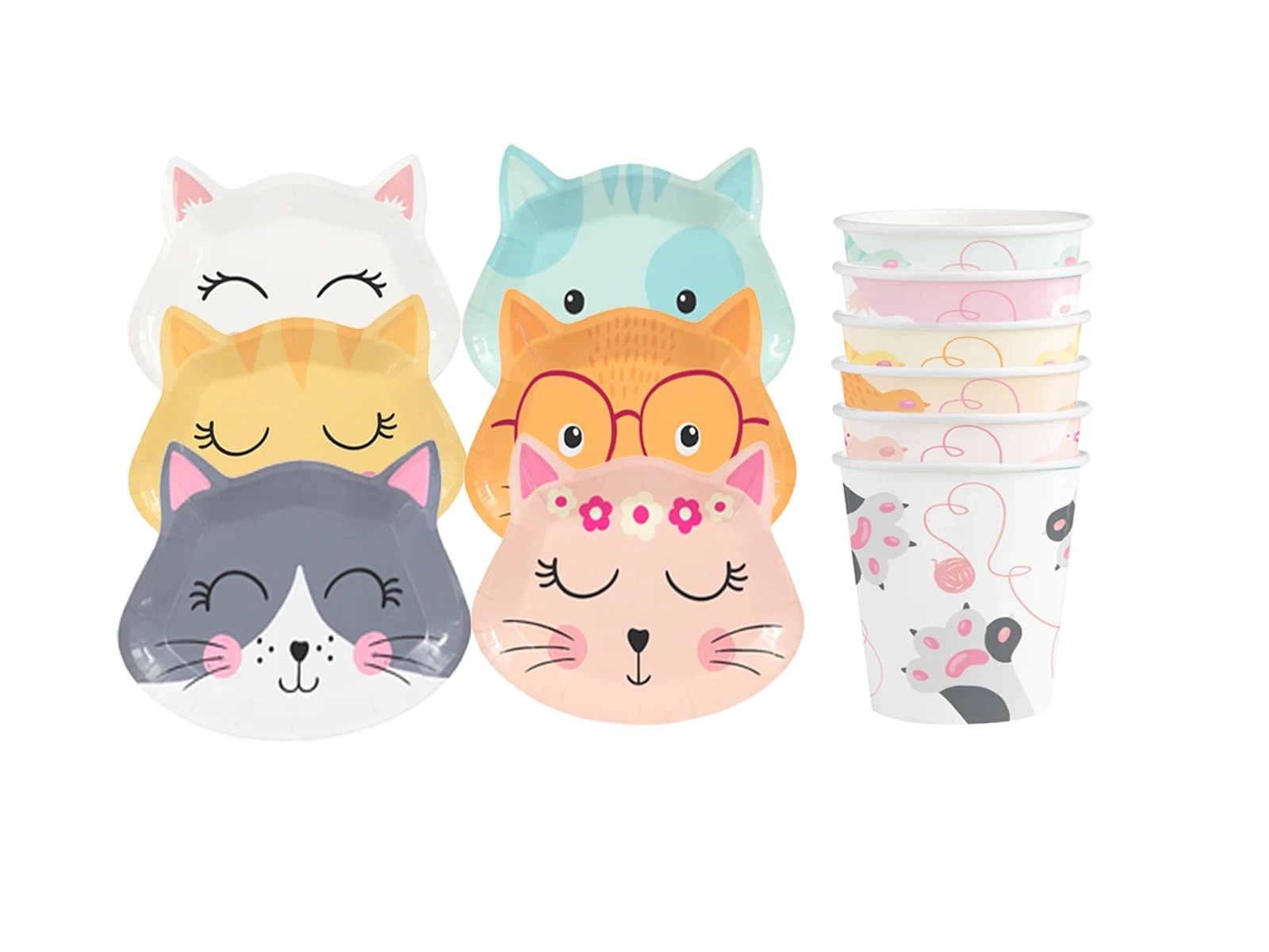 Set de hârtie Cats - pahare+prosoape - 12 buc.