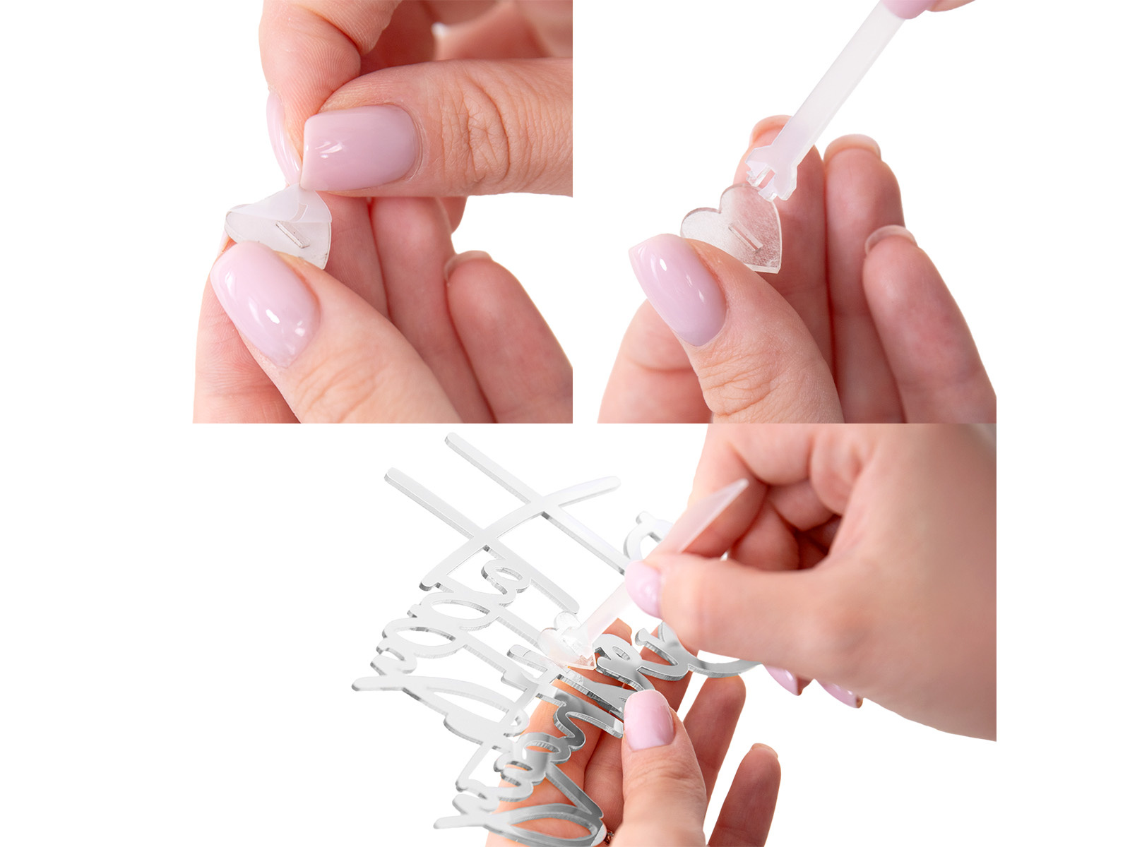Kitul include: 1 x topper, 1 x picker, 1 x inimă acrilică pentru a conecta topperul la picker.
