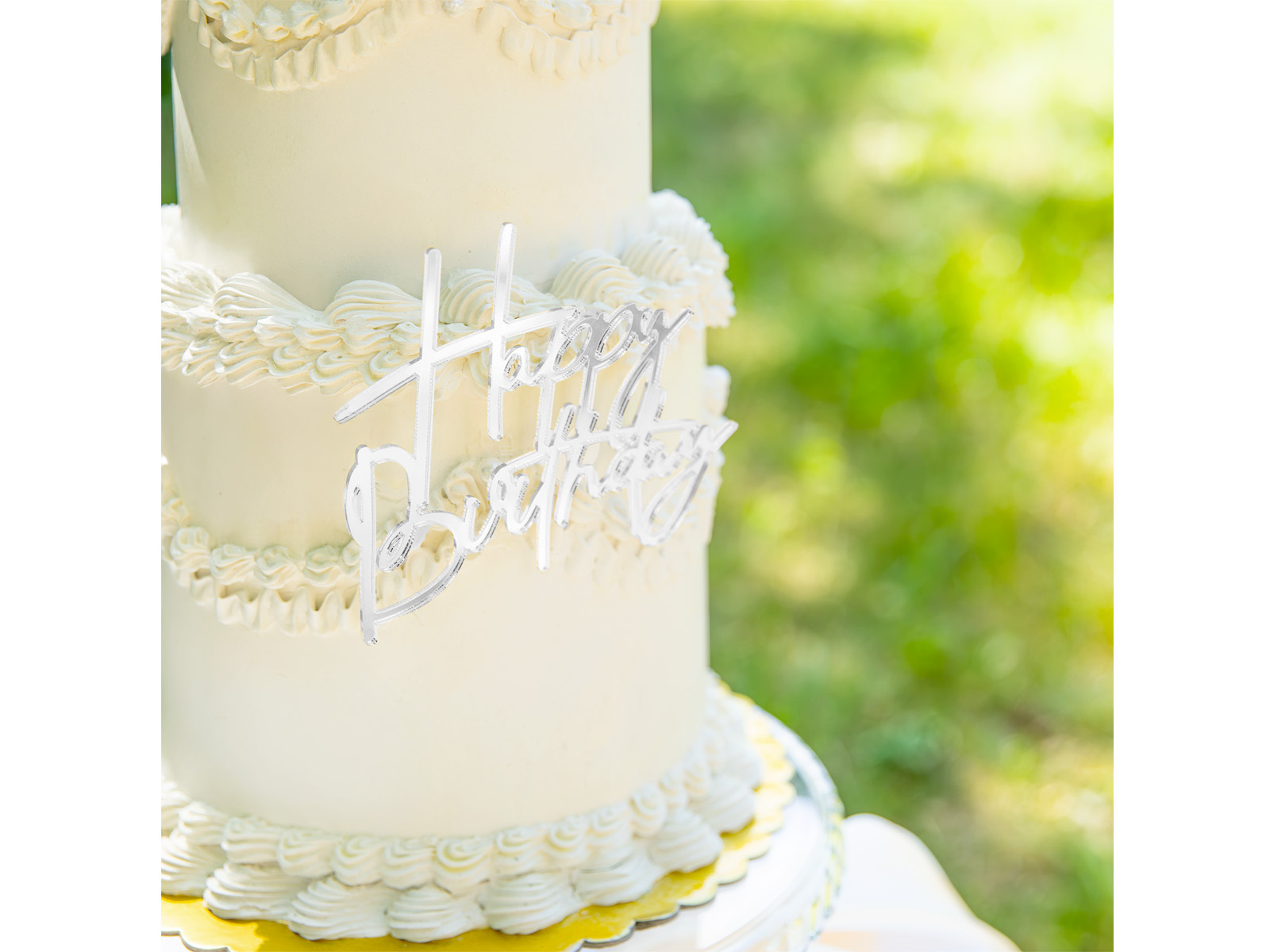 Topper lateral pentru tort Happy Birthday - argintiu - 1 buc.