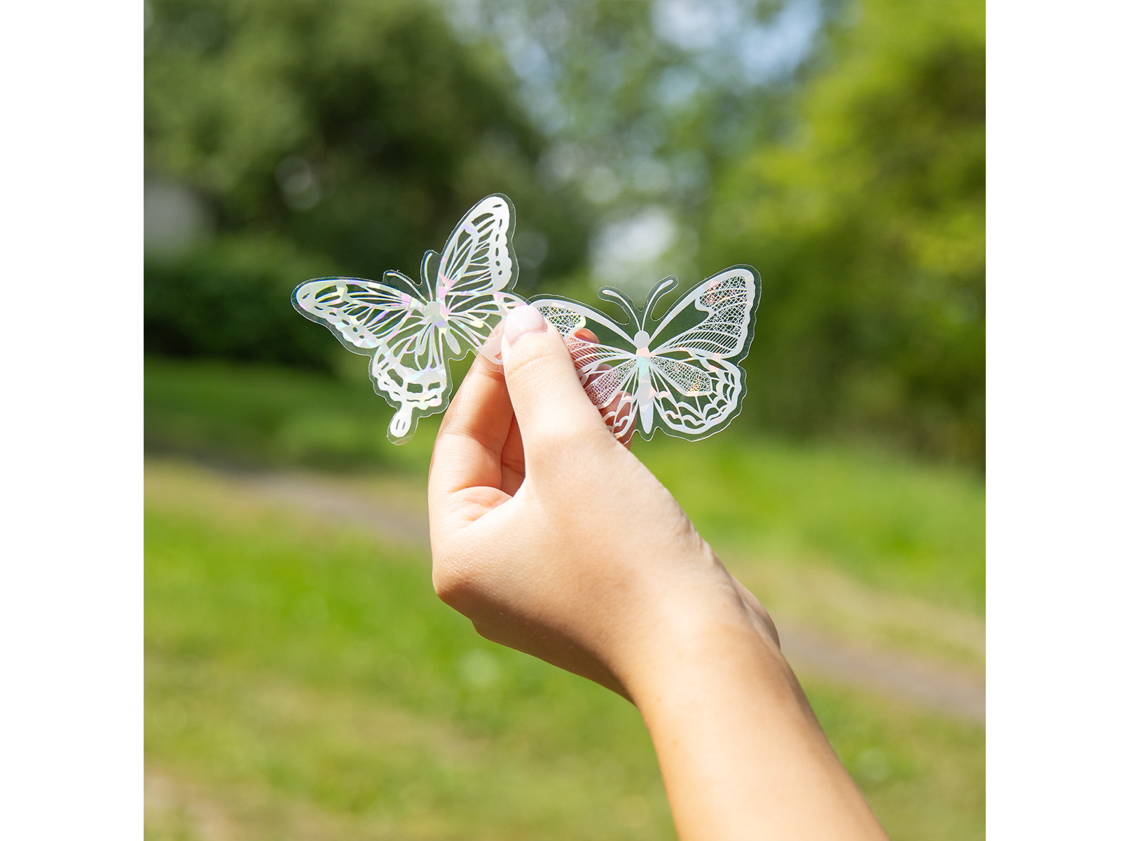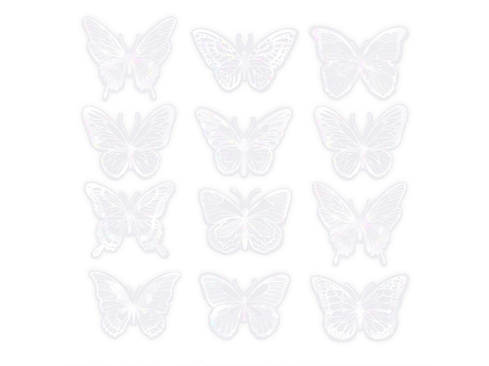 Abțibilduri cu fluturi holografici albi - 12 buc.