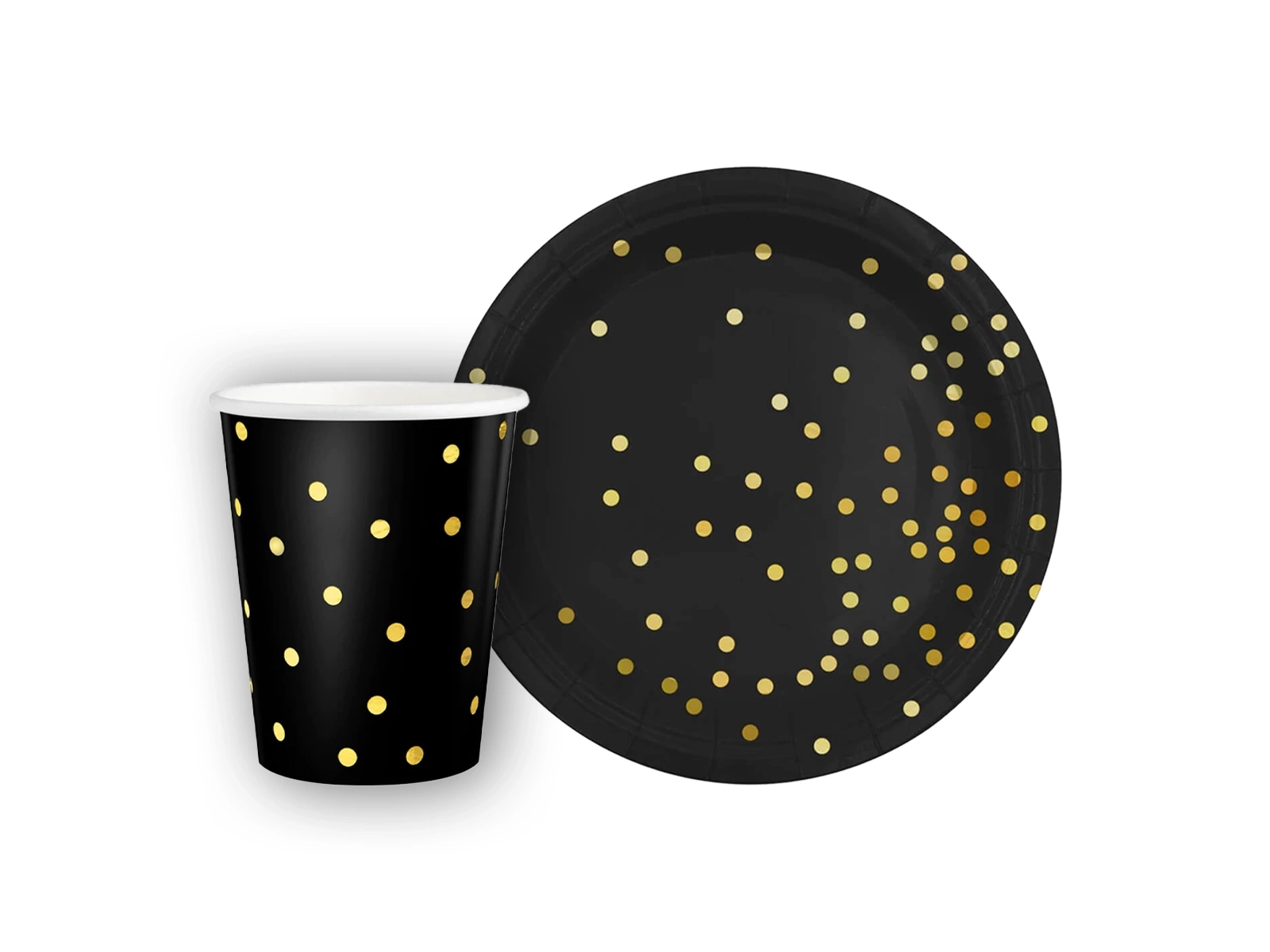 Set de hârtie neagră cu puncte aurii - 12 buc.