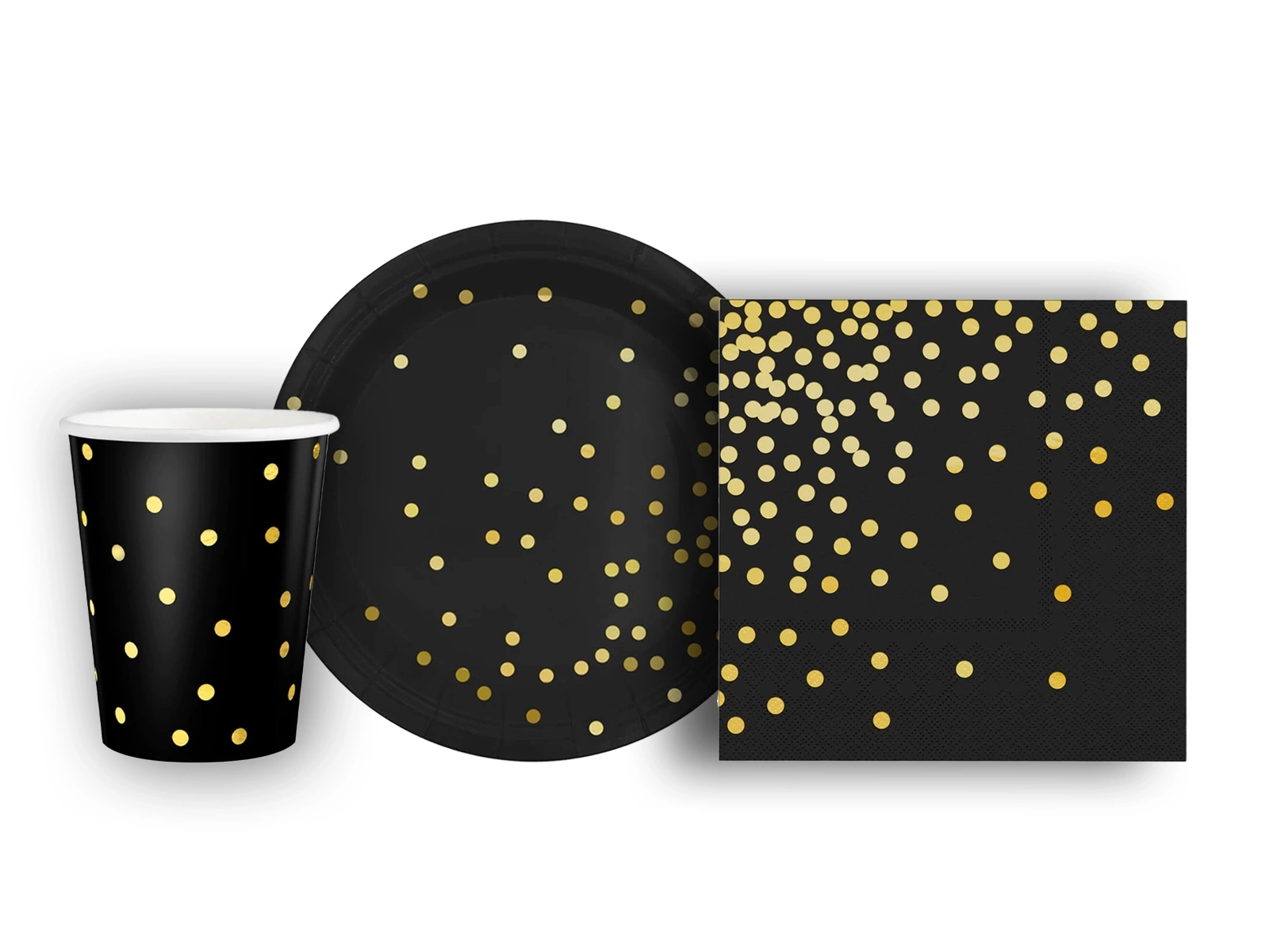 Set de hârtie neagră cu puncte aurii - 22 buc.