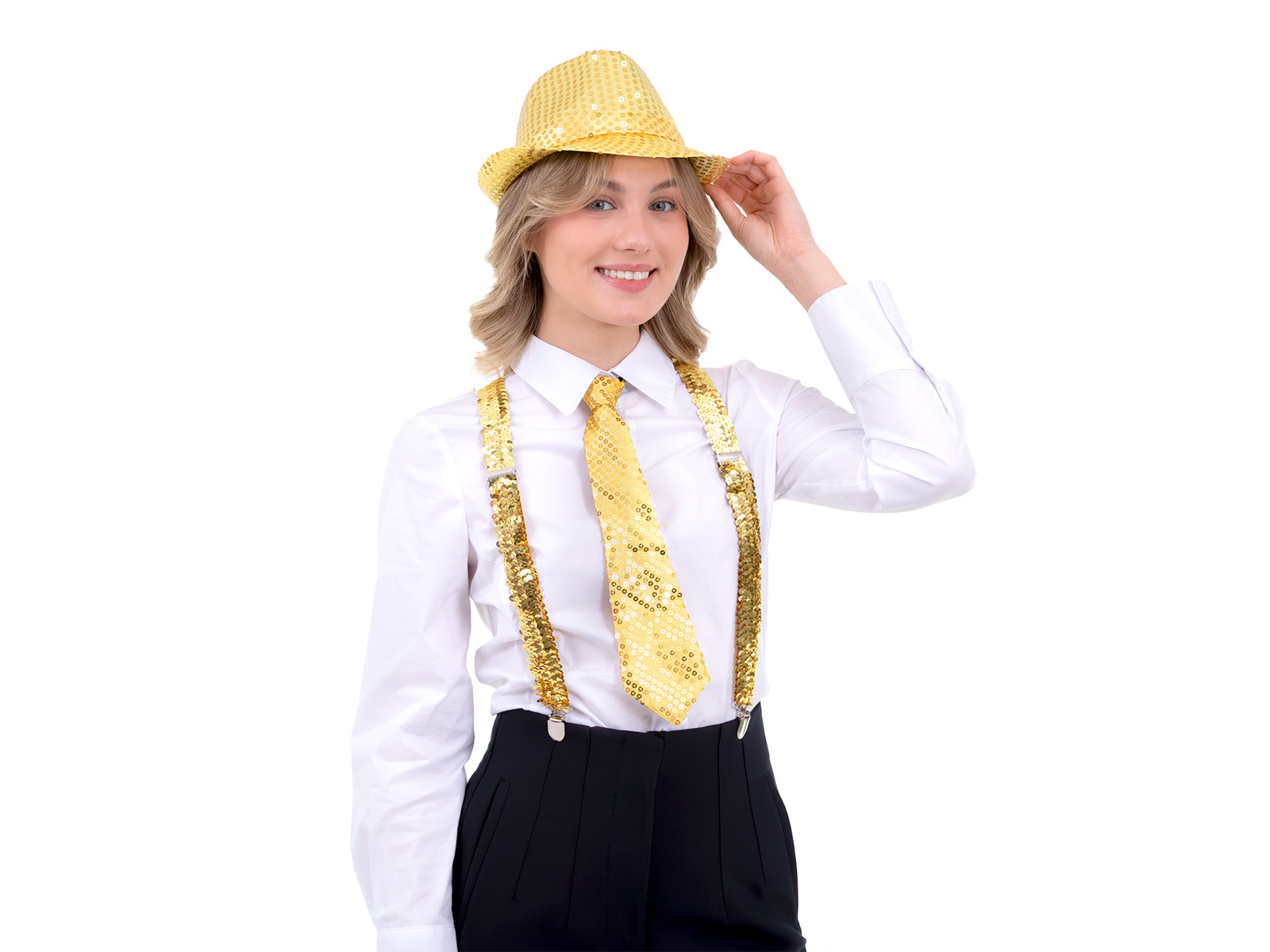 Cravată cu paiete - auriu - 36 cm - 1 buc.