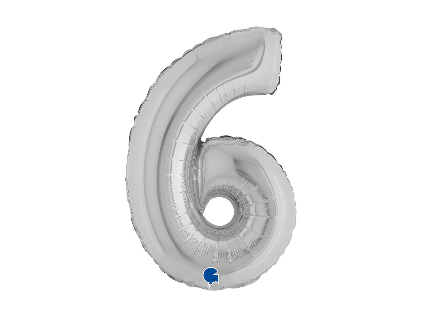 Balon cu numărul 6 din folie argintie - 14" - 1 buc.