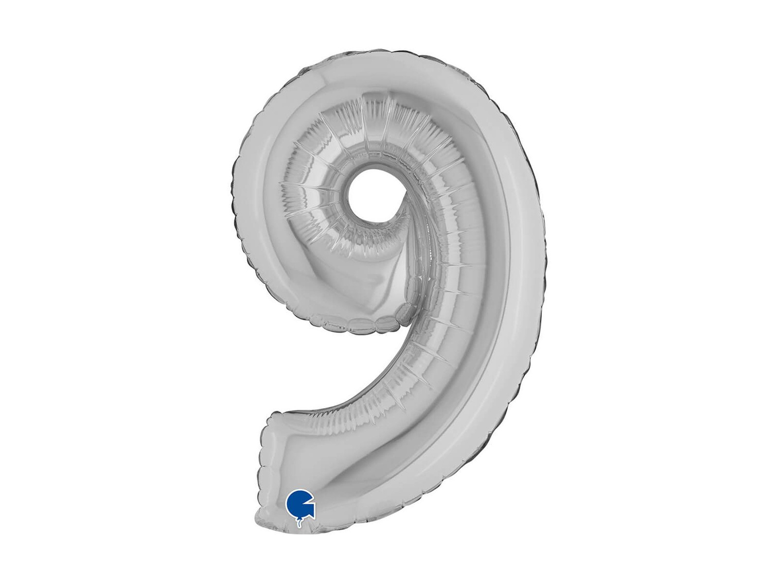 Balon cu numărul 9 din folie argintie - 14" - 1 buc.