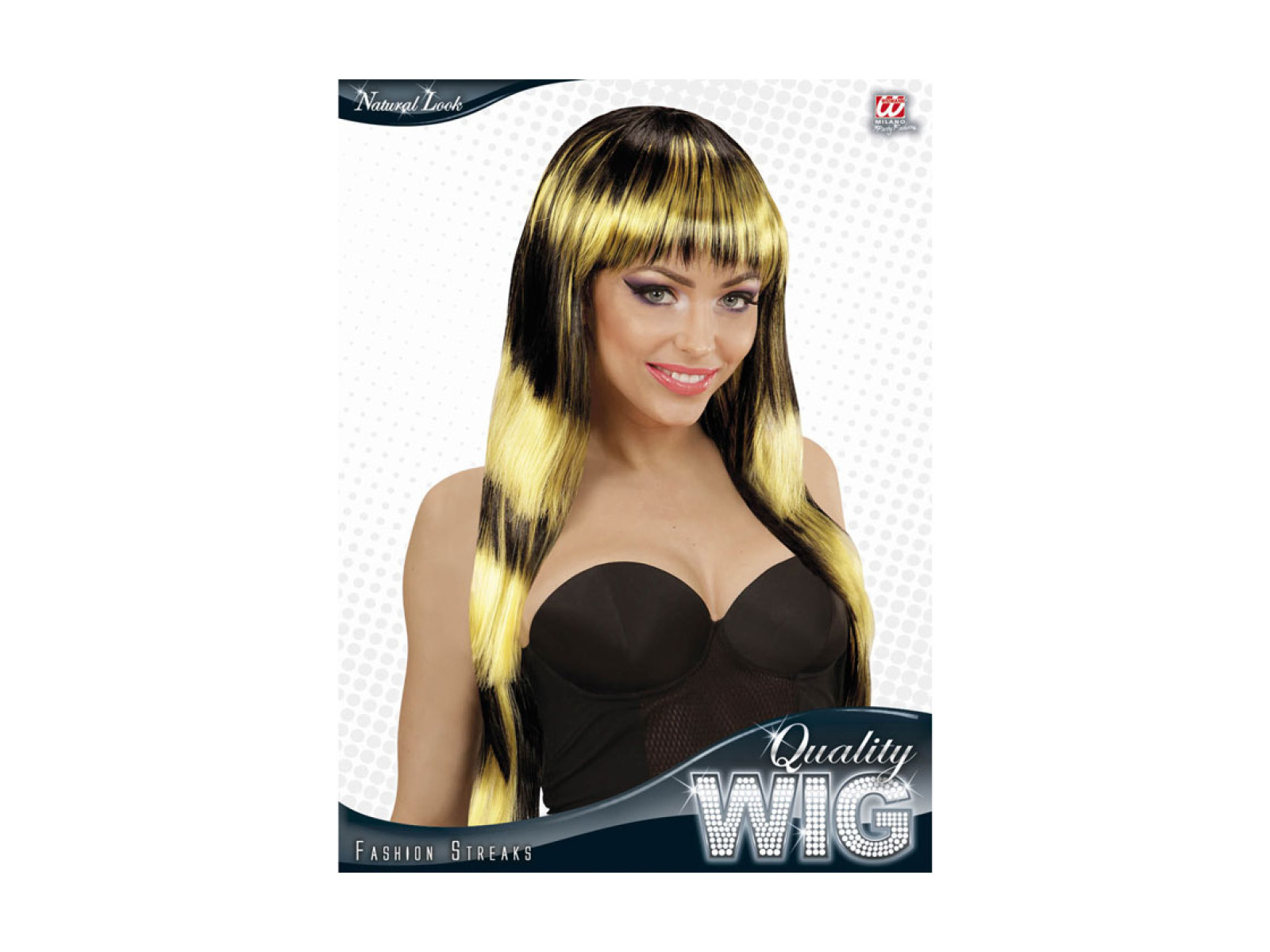 Peruca neagră și galbenă cu accente la modă