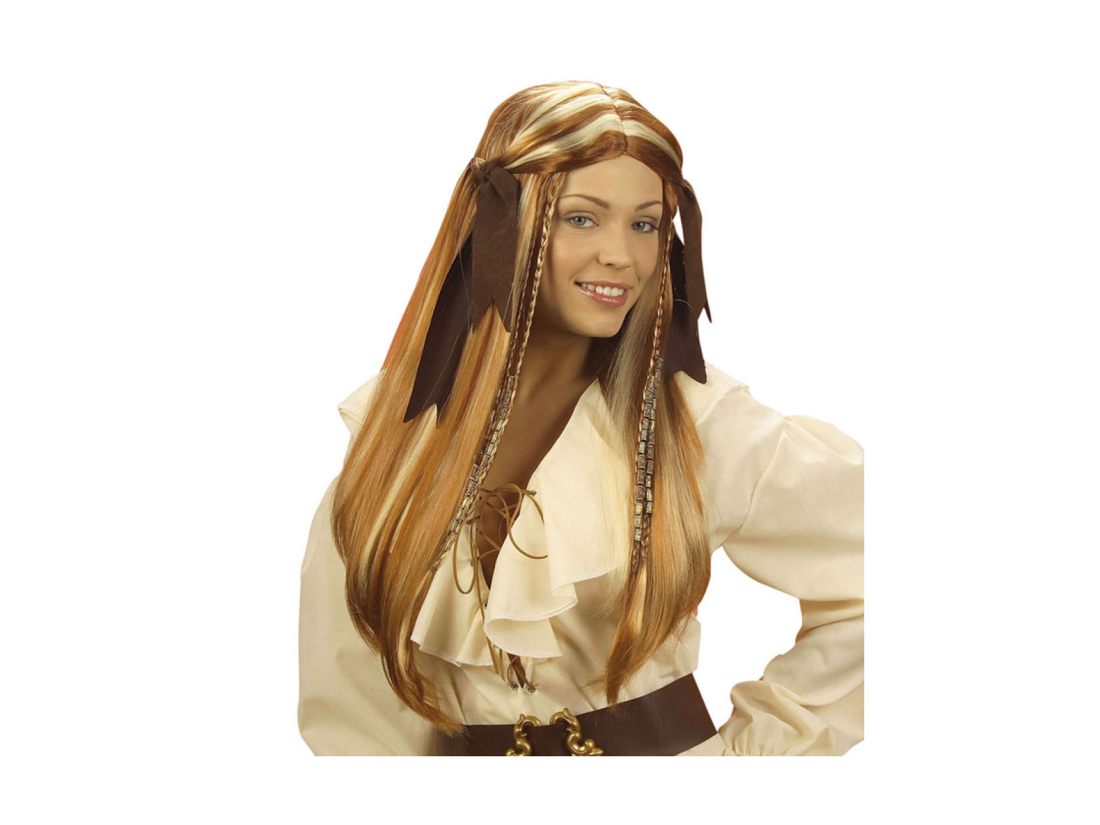 Peruca Pirat din Caraibe cu panglici din piele de căprioară
