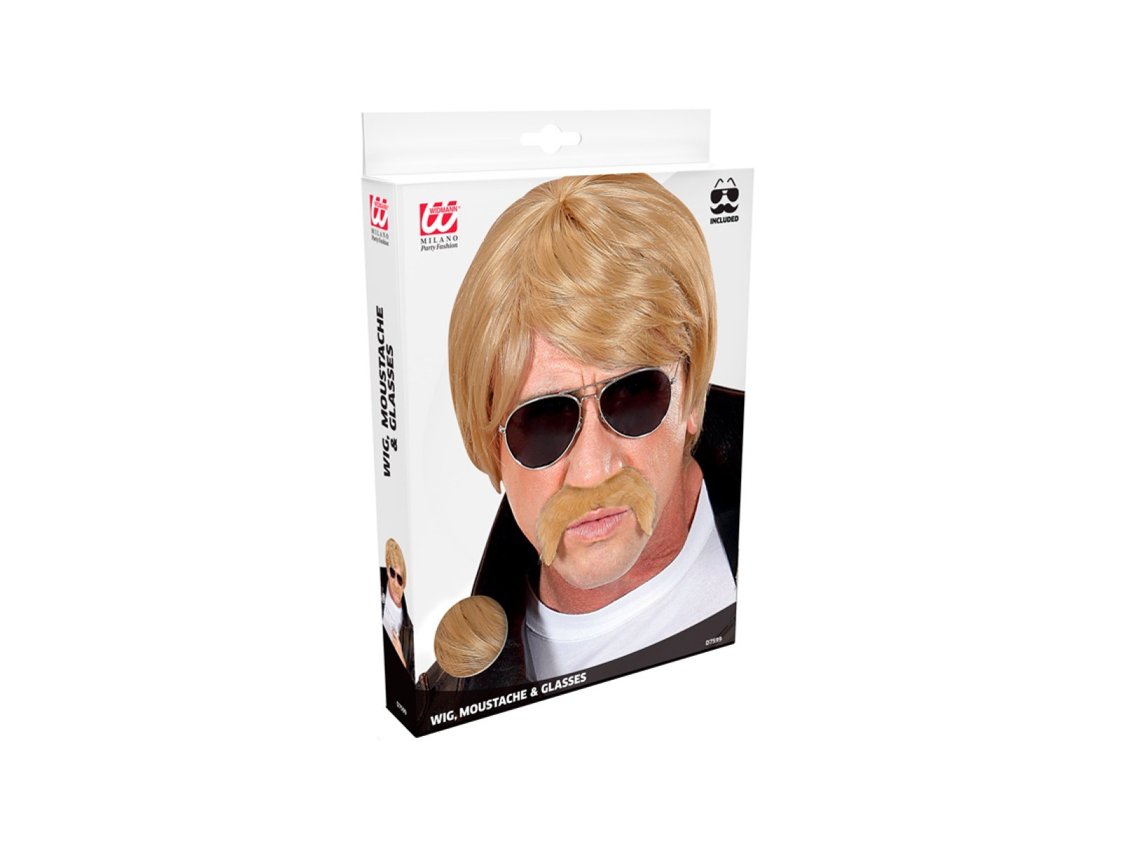 Agent cu perucă blondă cu mustață și ochelari de soare
