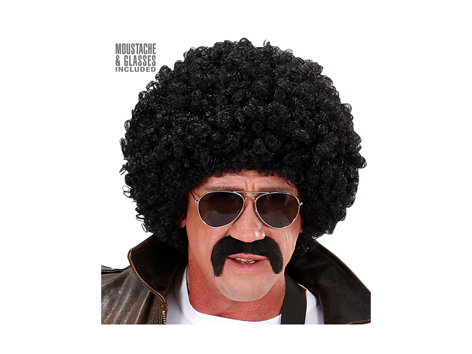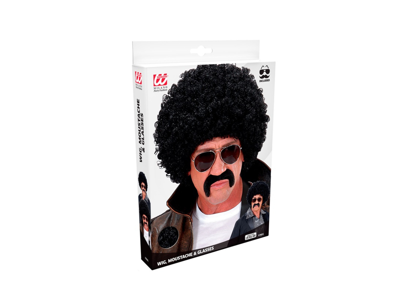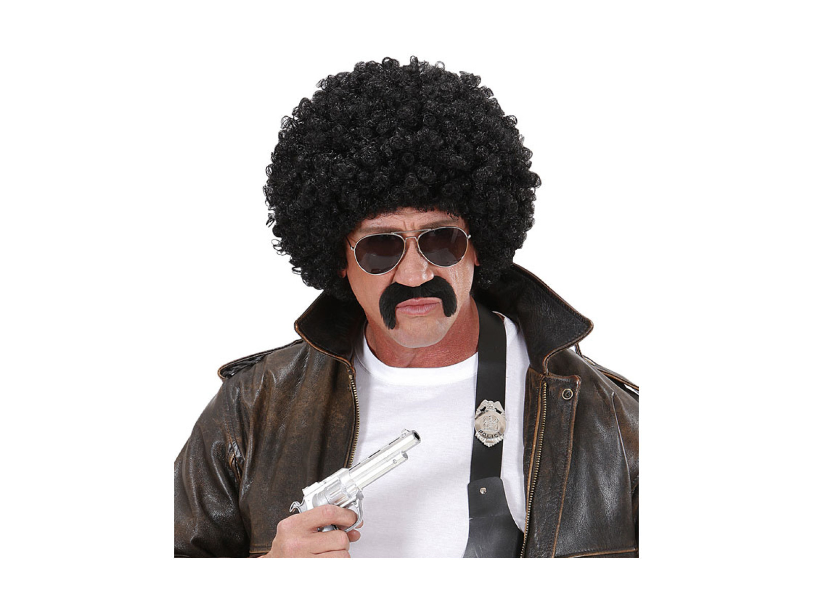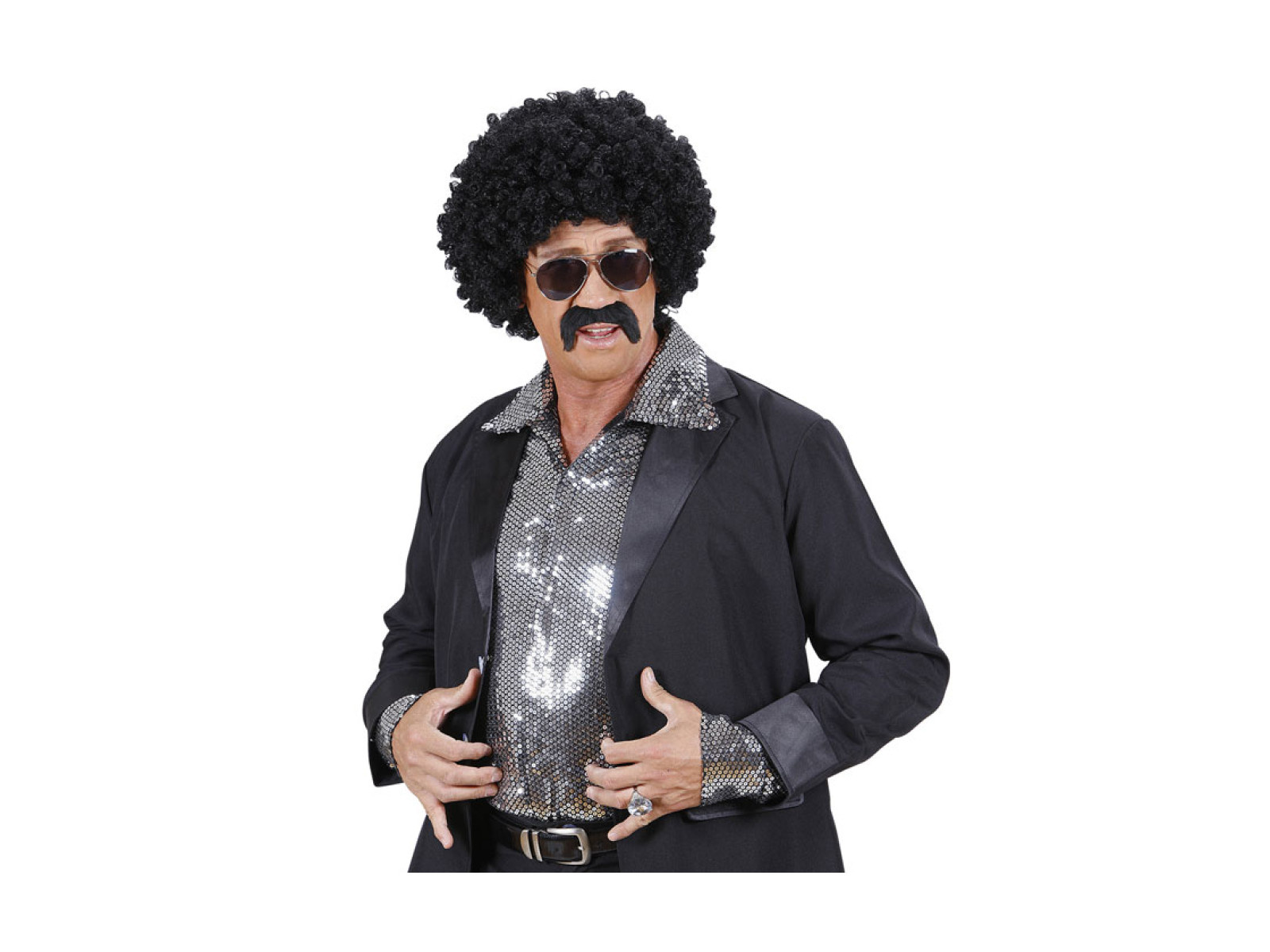 Peruca neagră creț agent cu mustață și ochelari de soare