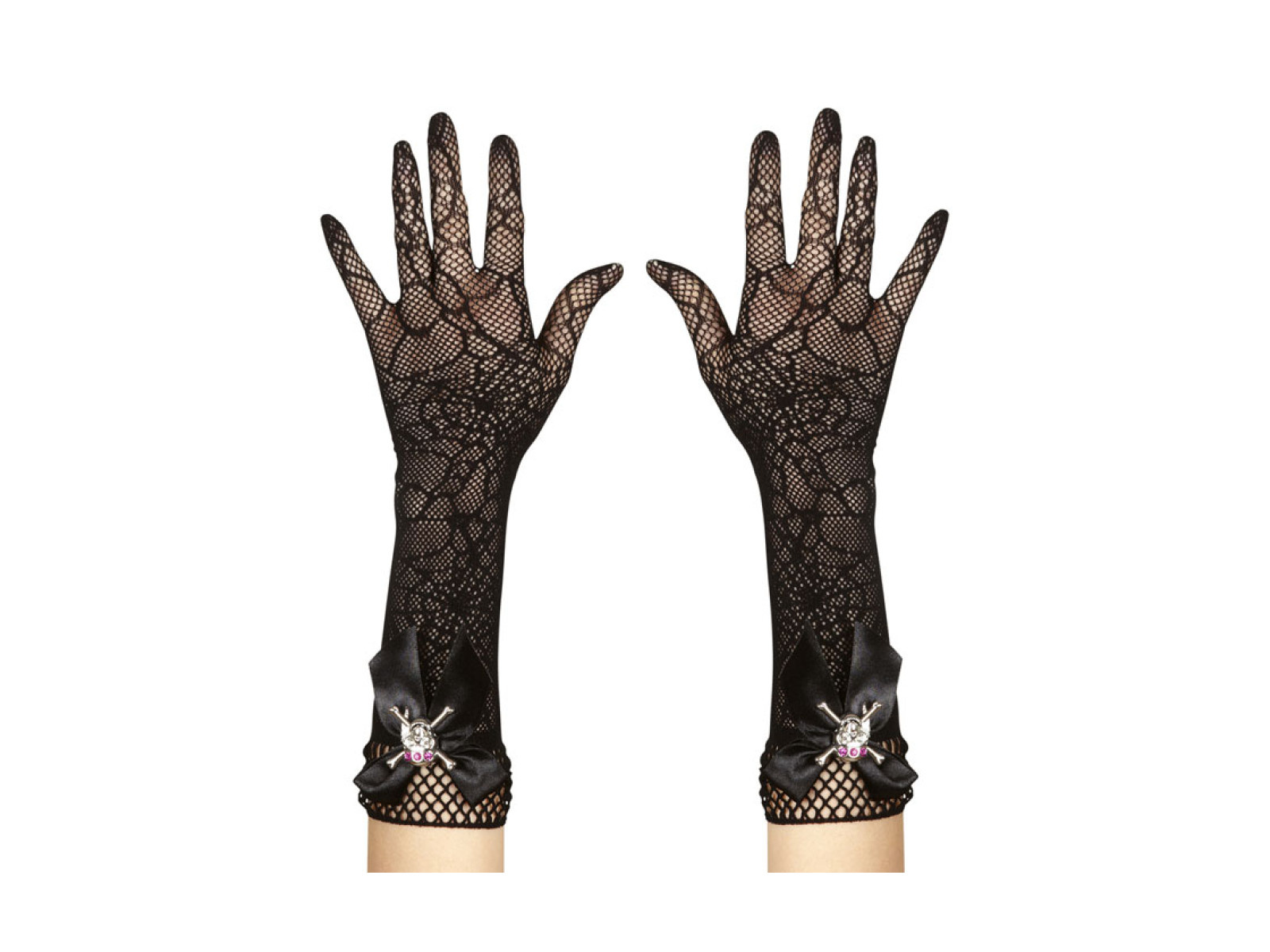 Mănuși craniene cu strass și plasă păianjen - 33 cm