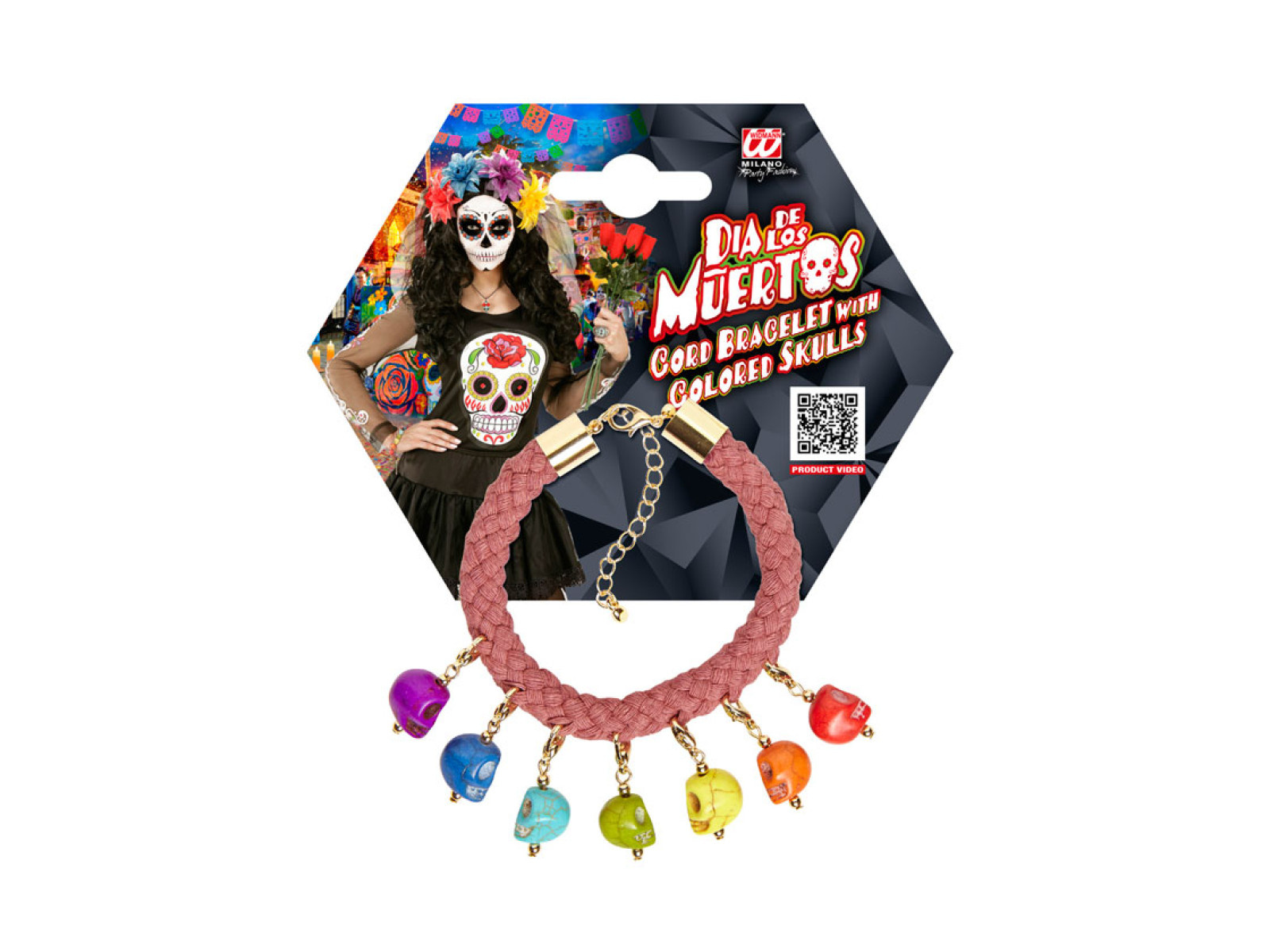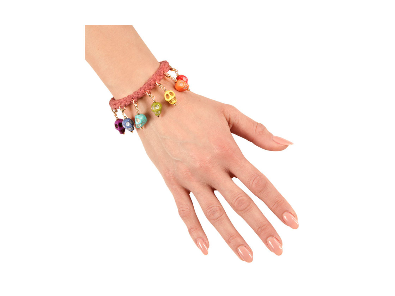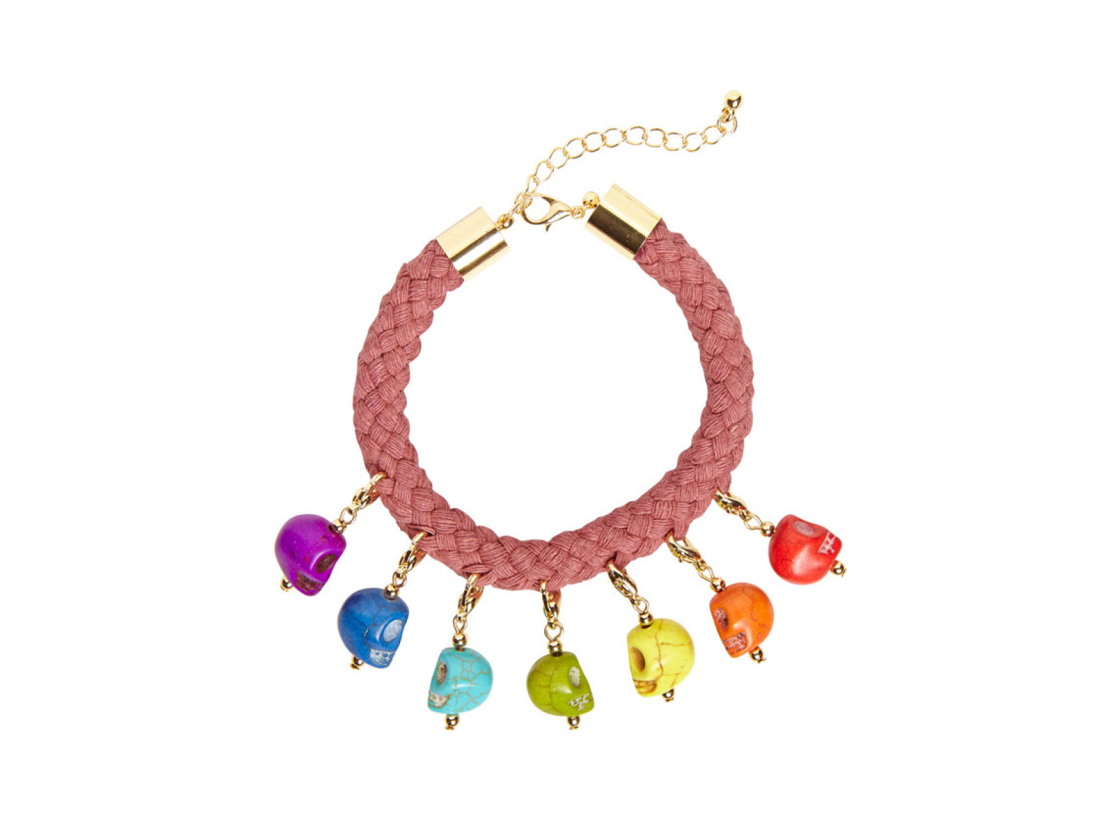 Brățară șnur cu 7 cranii colorate
