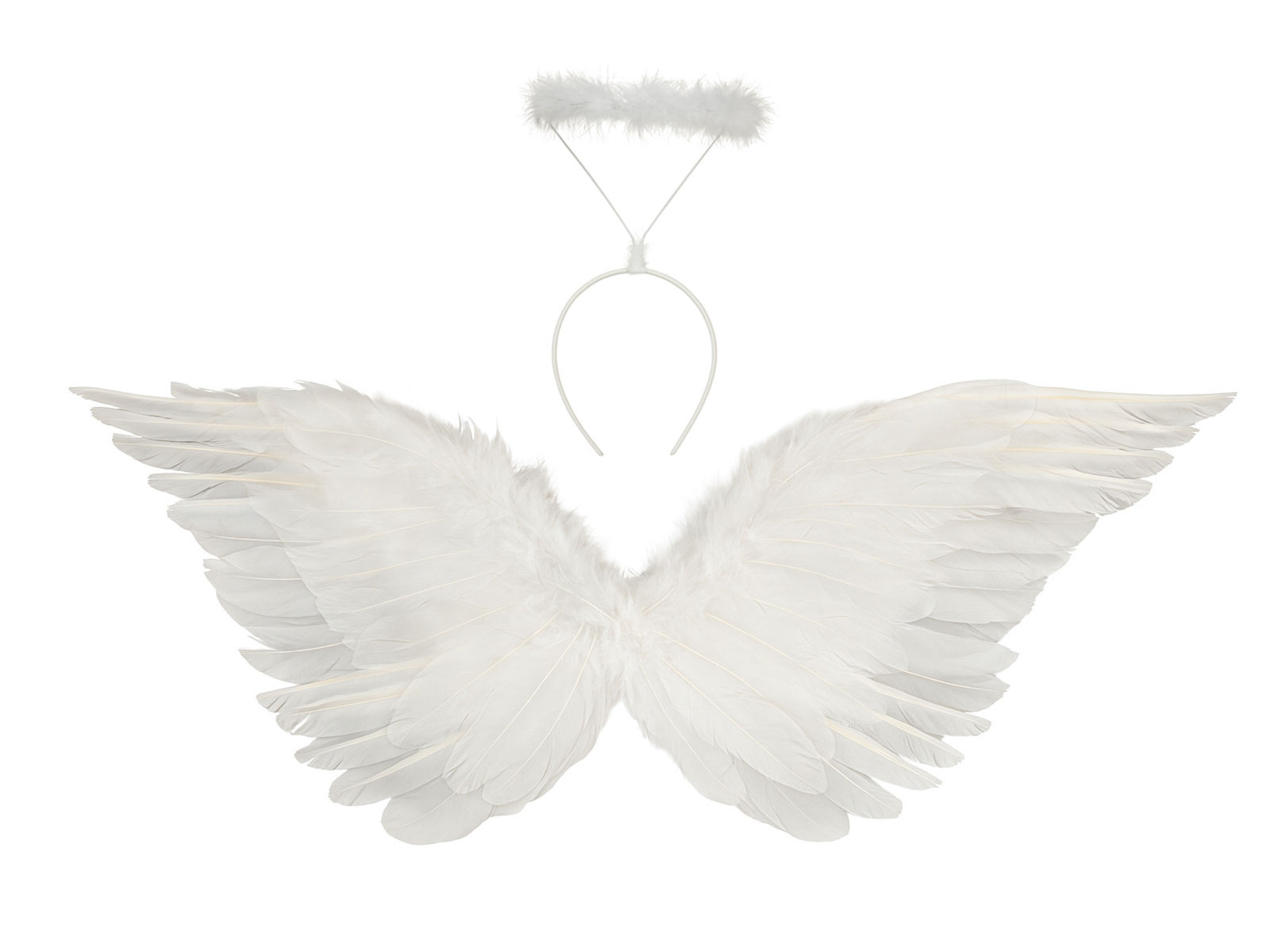 Set de aripi de înger alb 67 x 26 cm și Aureole