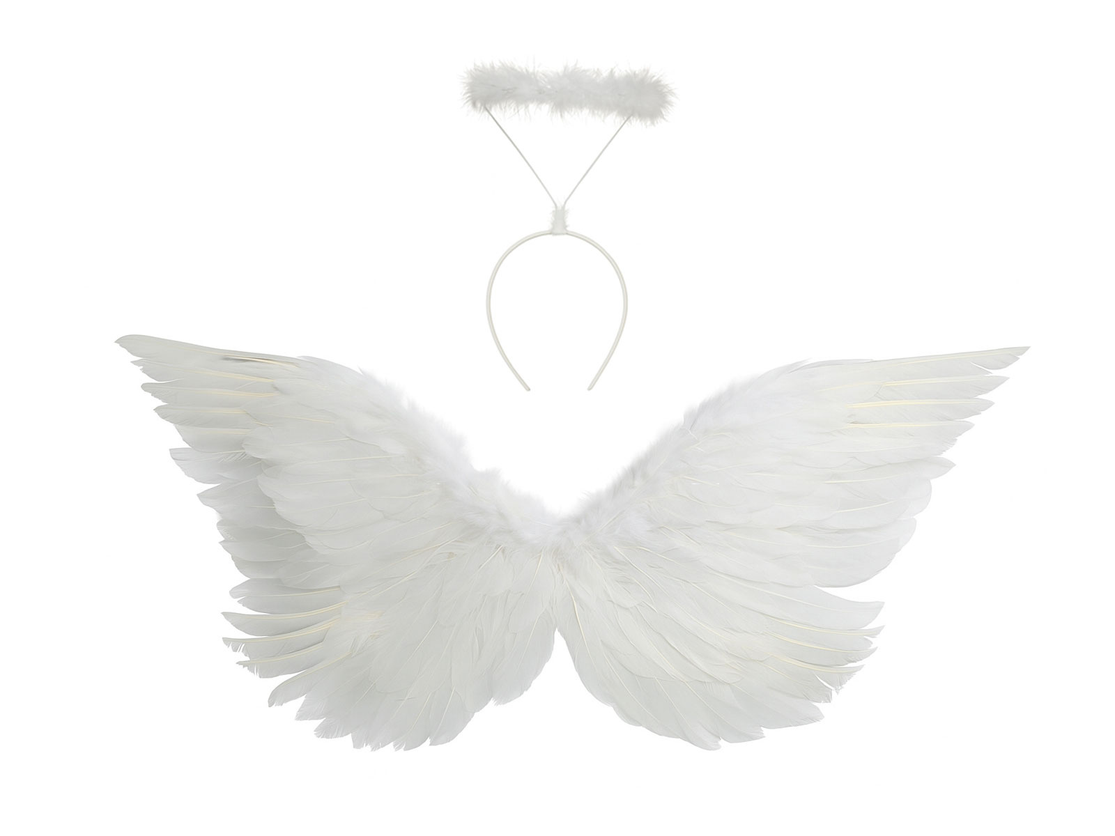 Set de aripi de înger alb 70 x 35 cm și Aureole