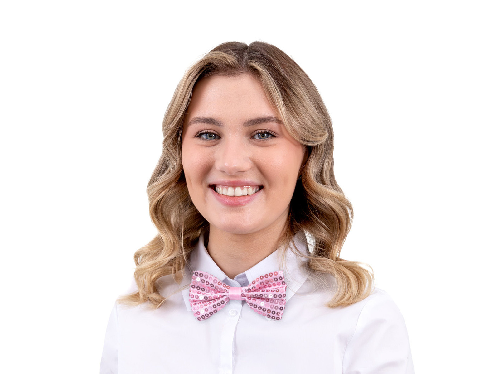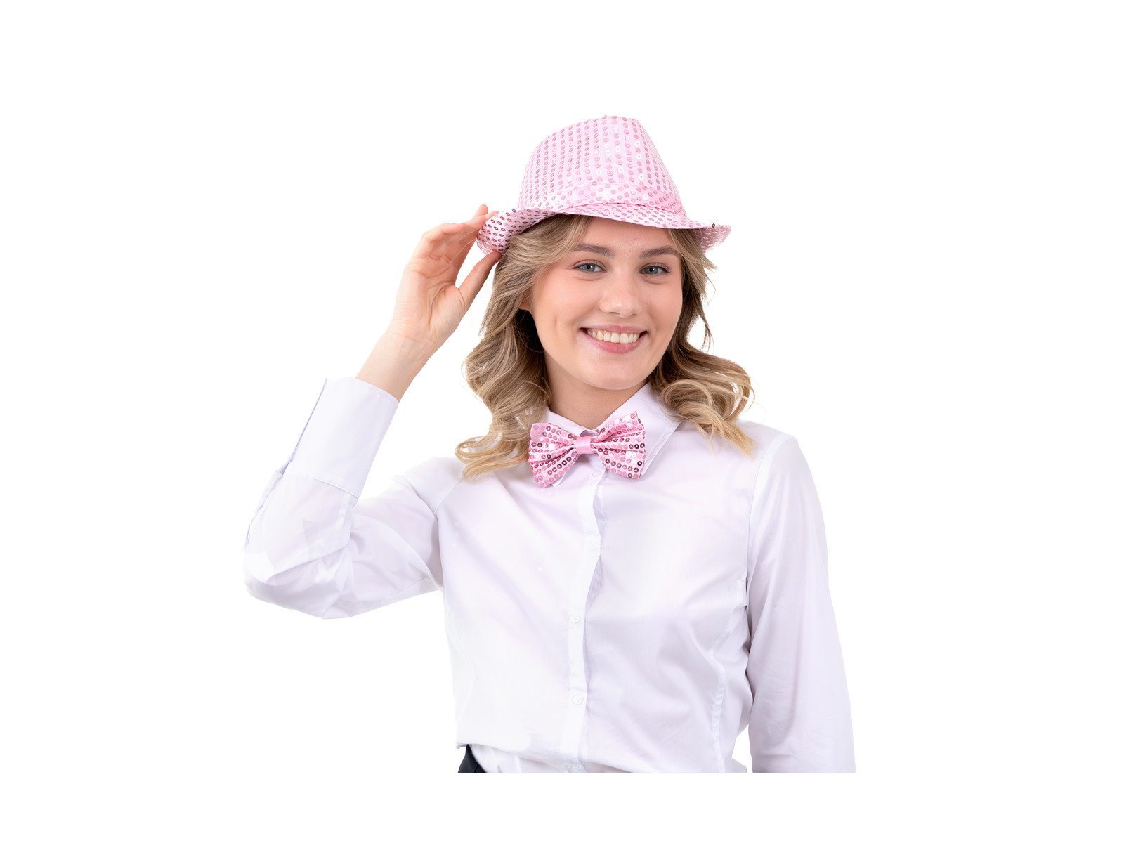 Papion roz cu paiete - 7 x 12 cm - 1 buc.