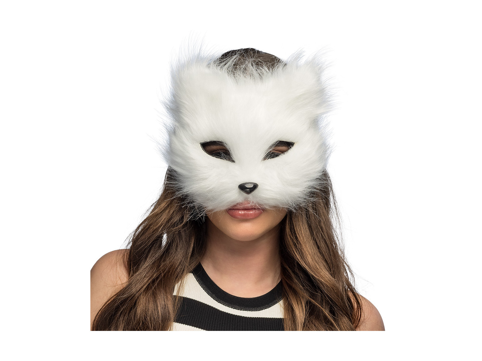 Mască de pluș cu pisică albă