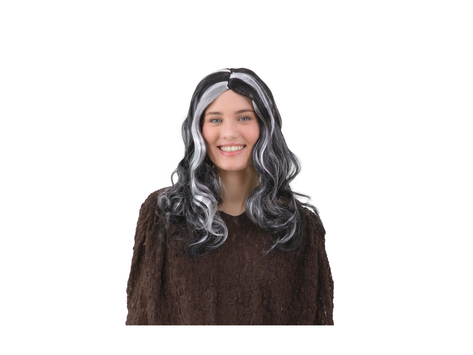 Peruca lungă creț - alb și negru - 1 buc.