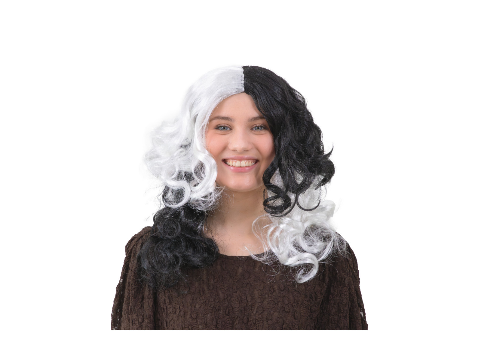 Peruca lungă creț - alb și negru - 1 buc.